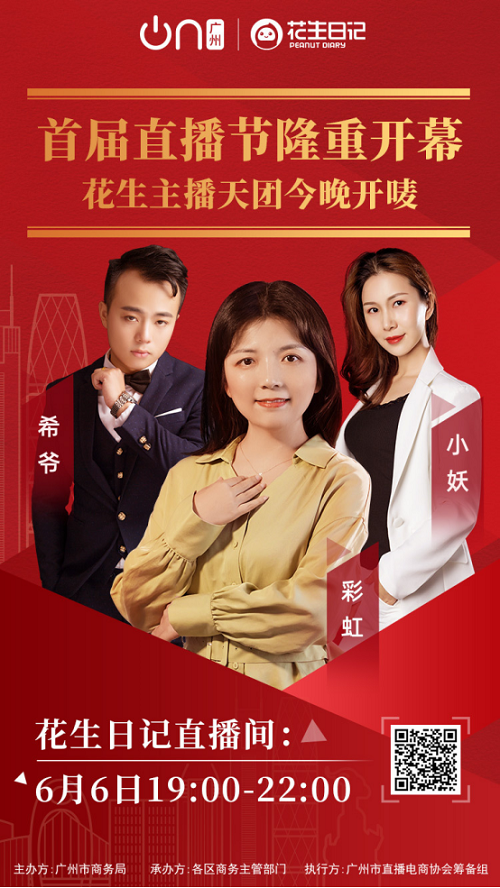 接下来,花生日记已准备就绪,将在6月6日-8日的直播节中,积极参与电商直播活动,为广州成为电商直播之都献上自己的一份力量。